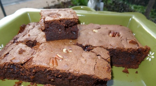 4Tapissez un moule carré de papier cuisson et versez y la pate, enfournez 25 mn.