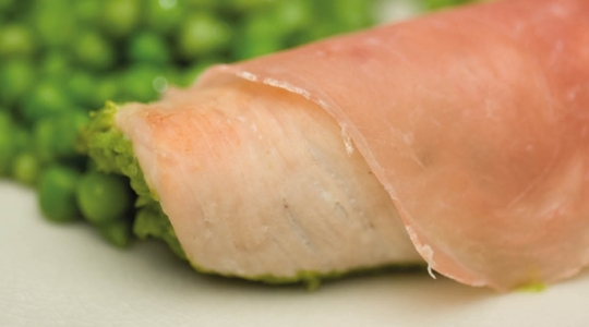 1Dans une casserole, versez le bouillon de volaille, ajouter l'échalote grossièrement hachée, les petits pois, le sucre et une pincée de sel. Portez à ébullition puis laissez cuire environ 10 minutes. Egouttez et ne gardez que la moitié du liquide.