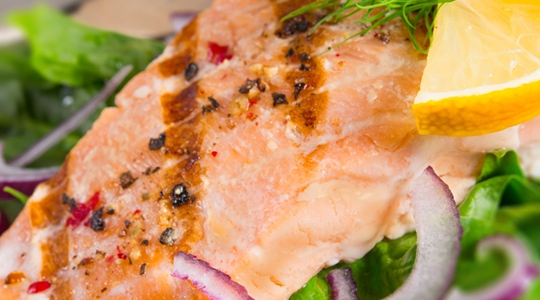 7Nappez* avec la sauce. Décorez avec l'aneth, la ciboulette, le citron et les rondelles de carottes. Servez immédiatement.