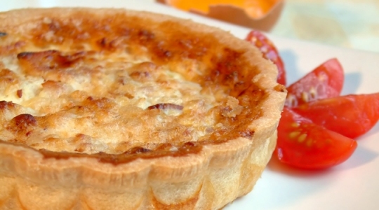 1Préchauffez le four à 210°C.Coupez l'oignon en 4 et cisaillez la ciboulette. Emiettez le thon.Cassez les oeufs dans la cuve du blender, ajoutez la crème puis le reste des ingrédients. Mixez 30 secondes en vitesse 2.