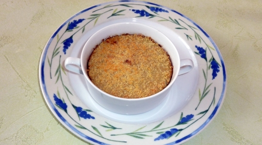 8Verser la préparation dans des plats à gratin, lisser la surface, la saupoudrer de chapelure fine et faire gratiner au four à 190 °C. Servir aussitôt avec une salade de mesclun.