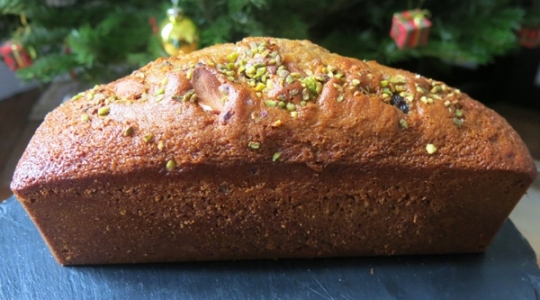 3Versez la pâte dans un moule à cake, parsemez de pistaches concassées et enfournez une heure dans un four à 160°.