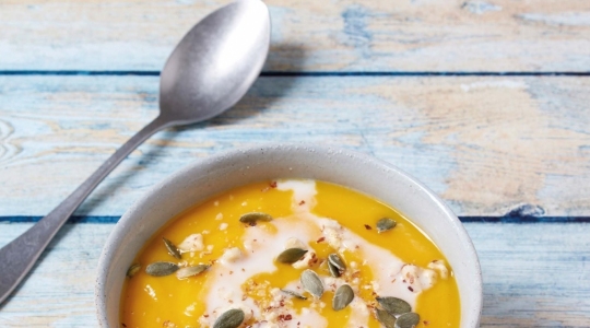 5Ajoutez le potiron, 200 ml d'eau, le jus de citron, le bouillon et lancez le programme EXPERT, 23 minutes/vitesse 2A/100°C sans bouchon. Prolongez la cuisson si besoin.
