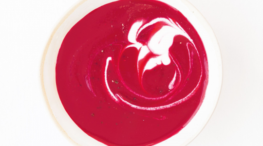 3Assaisonnez à votre goût et garnissez la soupe de volutes de yaourt.