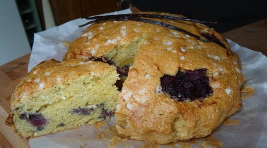 5Incorporer les blancs et les myrtilles au mélange, verser dans un moule et cuire 45 mn