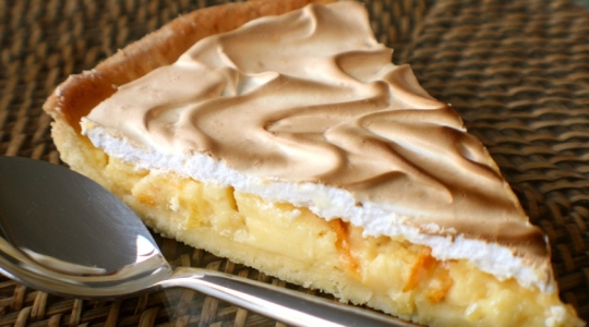 2Lepel de merengue op de afgekoelde citroentaart, brand de merengue met een brander lichtbruin.