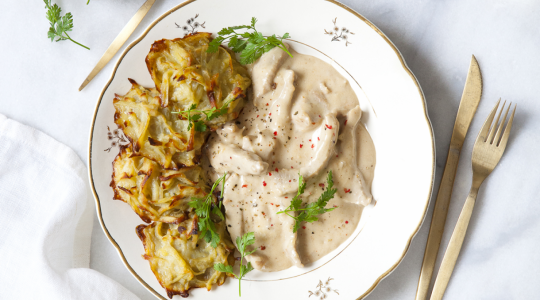 Kalfsreepjes uit zȕrich met rösti